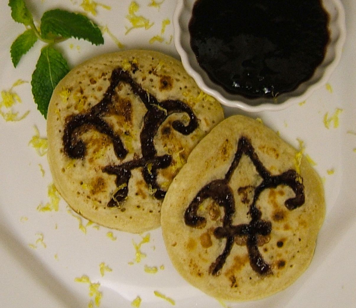 To honor this, I made my pancakes using berry jam (purple), lemon zest (gold), and a little mint (green).